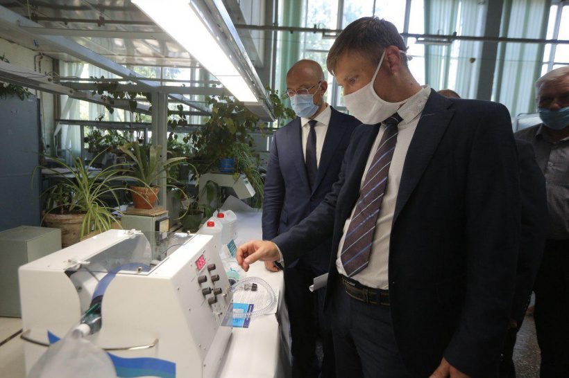 Денис Шмыгаль лично ознакомился с процессом производства и убедился, что выделенные средства направлены по назначению. «Новатор» должен обеспечить кислородными концентраторами украинские больницы и получить возможность поставлять их на экспорт.