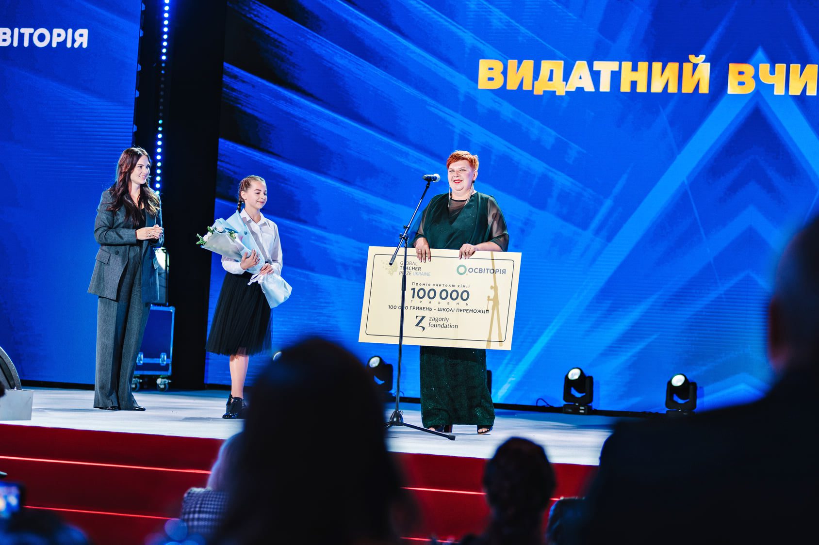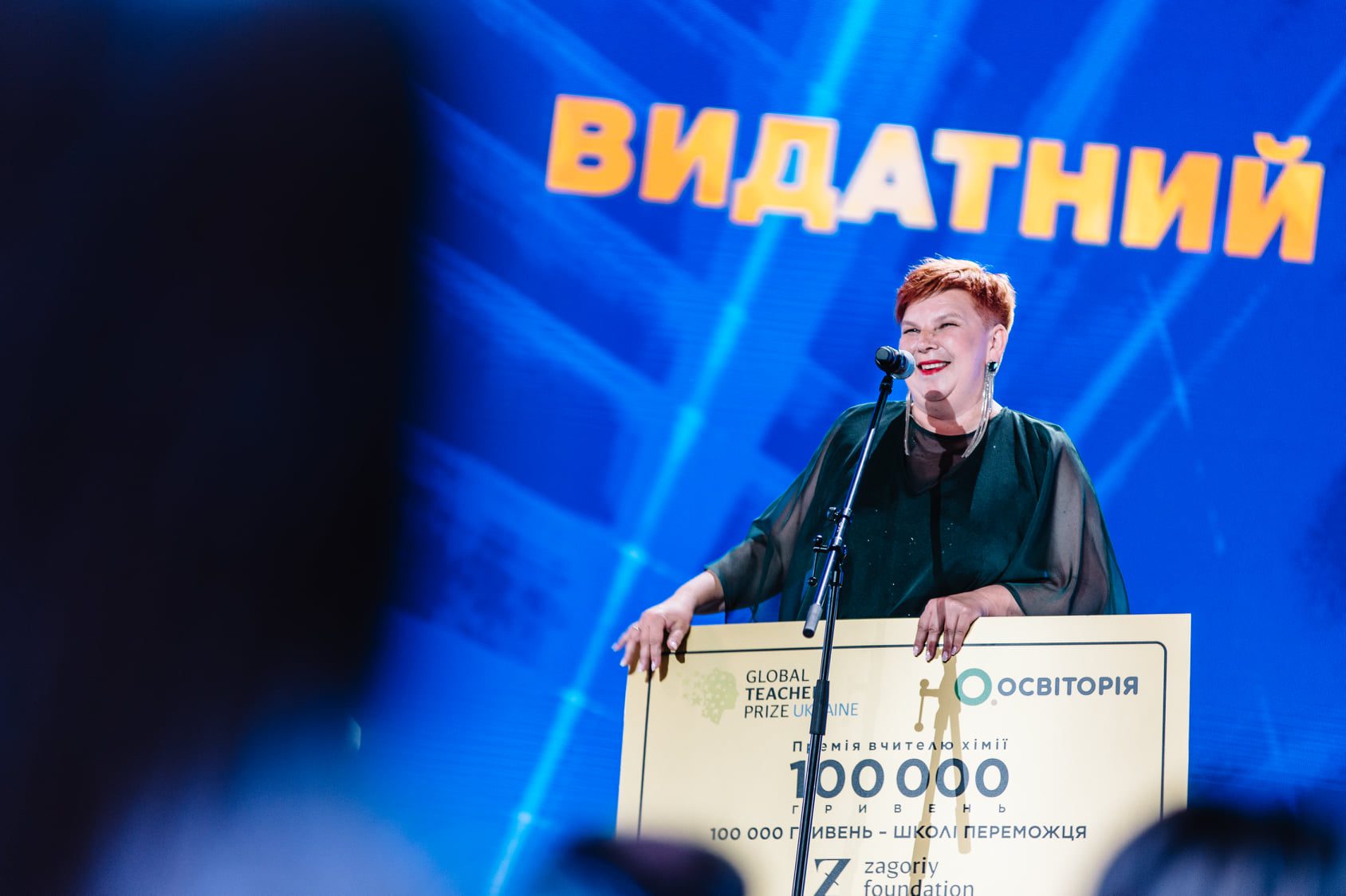 Напомним, что 3 октября, состоялась церемония награждения премии Global Teacher Prize Ukraine. Педагог Технологического многопрофильного лицея им. А. Мазура, хмельничанка Наталья Зима стала лучшим учителем химии в этом году. Партнеры премии на смогли остаться равнодушными к ее инновационному подходу в преподавании химии. Таким образом, Наталья Зима получила 200 000 гривен. Из этой суммы 100 000 гривен будут направлены на нужды Технологического многопрофильного лицея имени Артема Мазура, а половина — по своему усмотрению. От партнеров премии учительница получила современное оборудование для дистанционного обучения, а для химической лаборатории — электронно-измерительный комплекс.