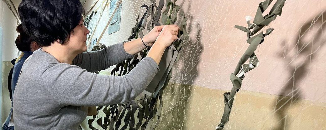 Ще з початку війни волонтери в Хмельницькому організувалися для плетіння маскувальних сіток, адже маскування у війні – це невід’ємна частина бойової діяльності. Саме тому плетіння маскувальних сіток дуже важлива справа і таким чином звичайні громадяни можуть допомогти військовим на передовій. Це монотонна та рутина робота, але така діяльність може врятувати чиєсь життя.